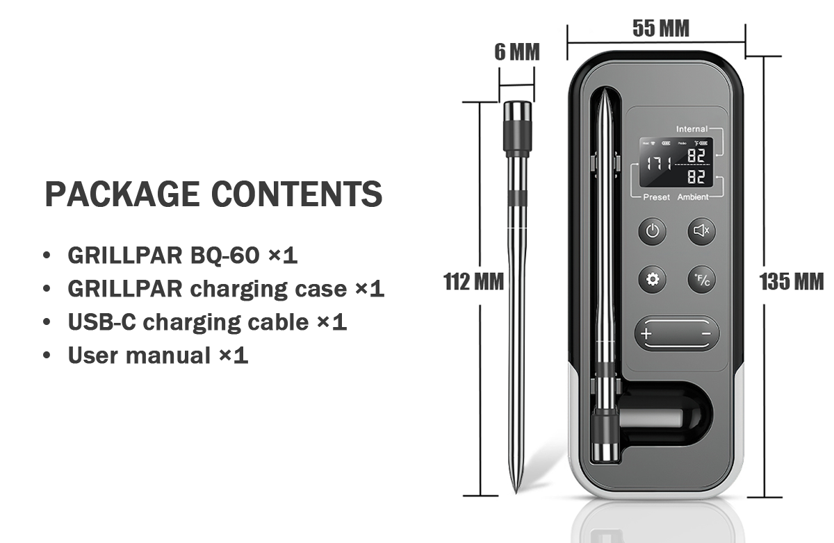 Compatible with most Bluetooth meat thermometers on the market. For best experience, we recommend using the Grillpar app with BQ-60.